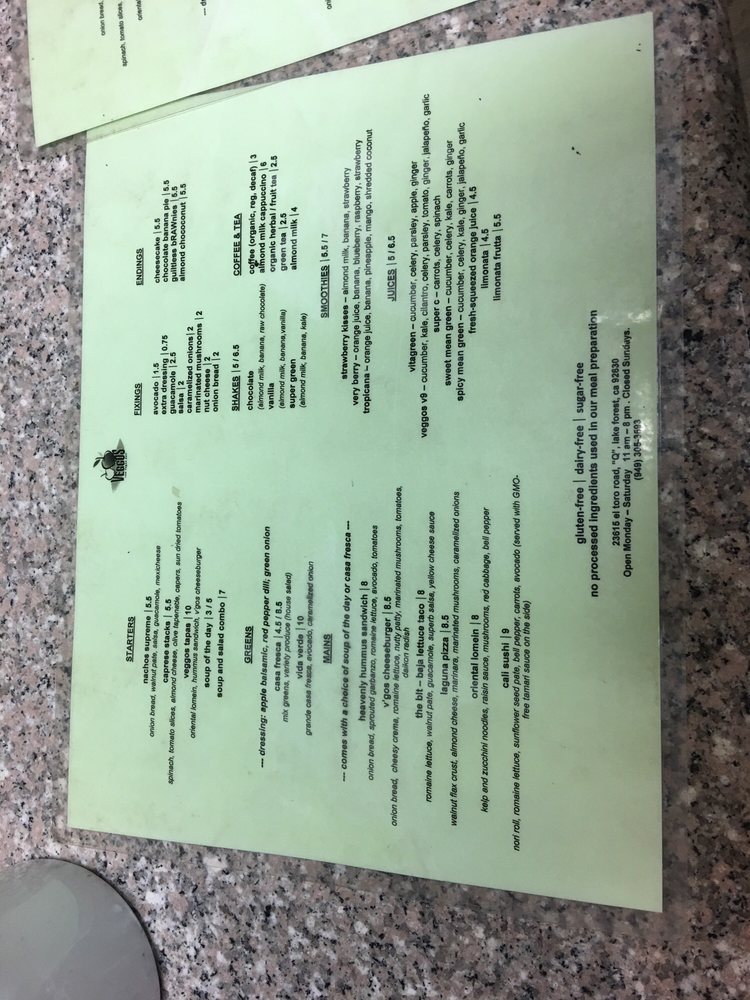 Welcome to Veggos Green Cuisine, a hidden gem located at 23615 El Toro Rd Q in Lake Forest, CA. This vibrant restaurant is a haven for raw vegan enthusiasts, offering a refreshing menu filled with nutrient-dense dishes that excite the palate.